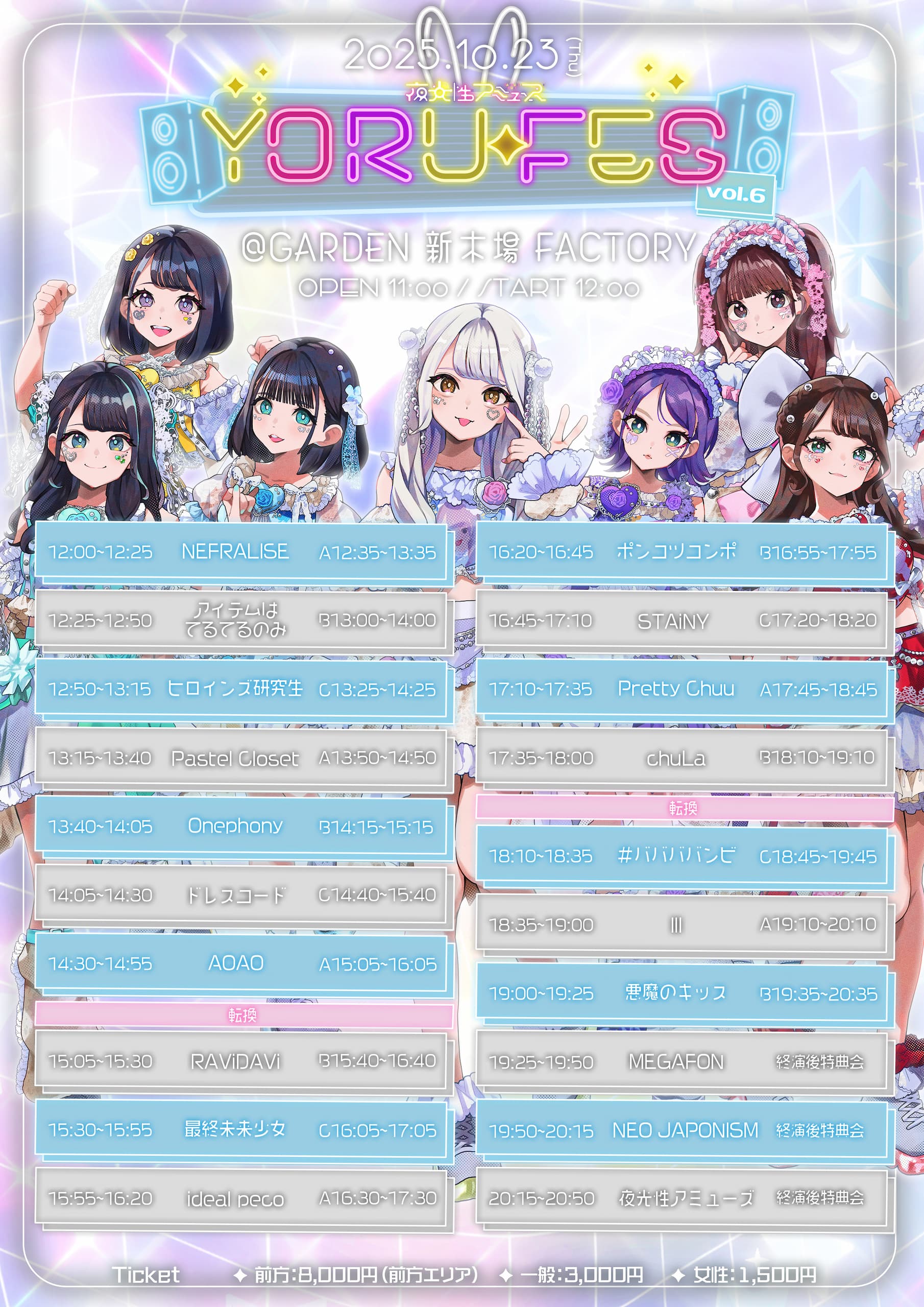 【東京】夜光性アミューズ主催対バン「YORU-FES vol.6」 @GARDEN 新木場 FACTORY