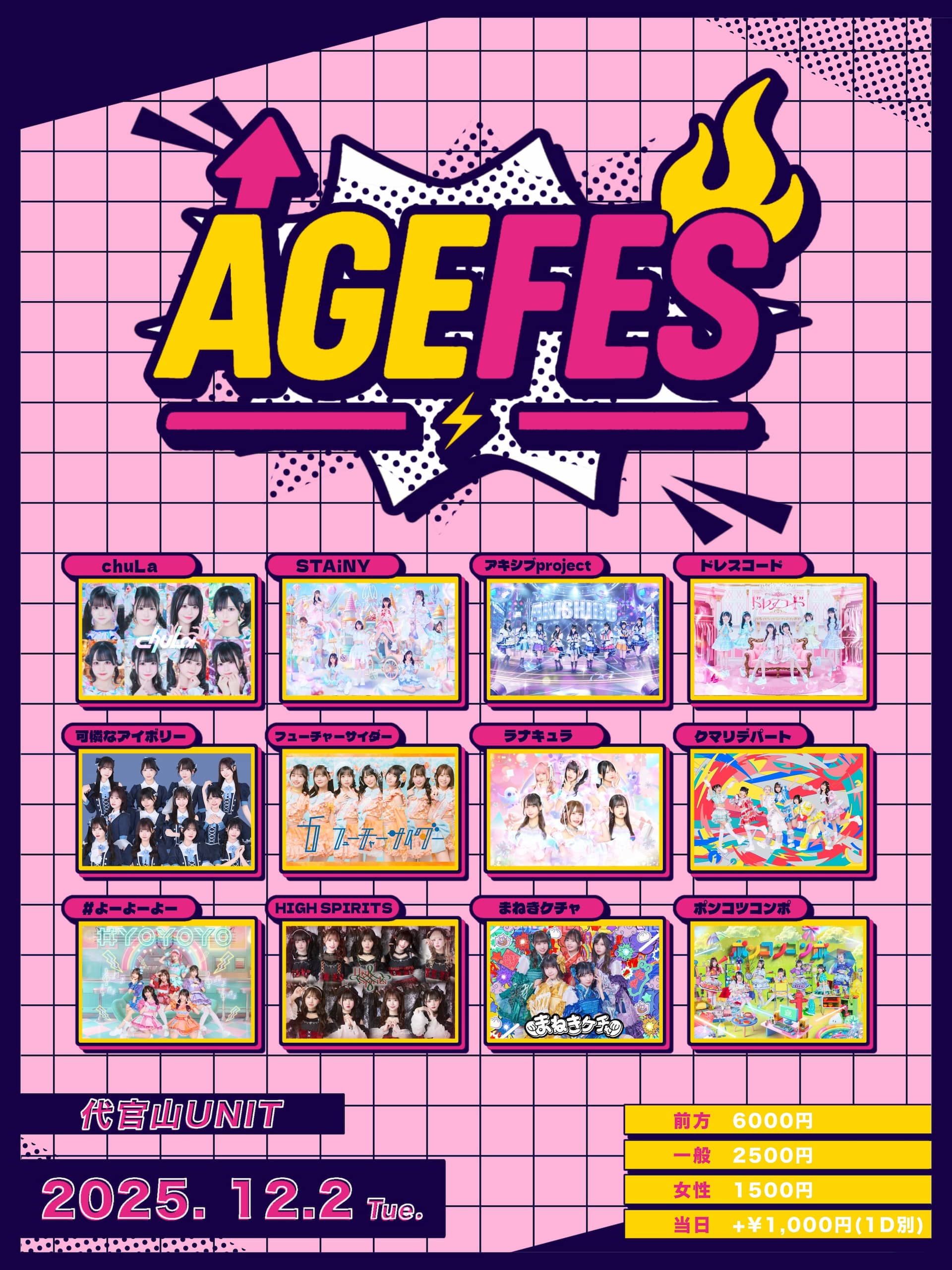 chuLa /STAiNY / アキシブproject / HIGH SPIRITS / 可憐なアイボリー / フューチャーサイダー / ラナキュラ / #よーよーよー / まねきケチャ / ドレスコード / ポンコツコンポ / クマリデパート /