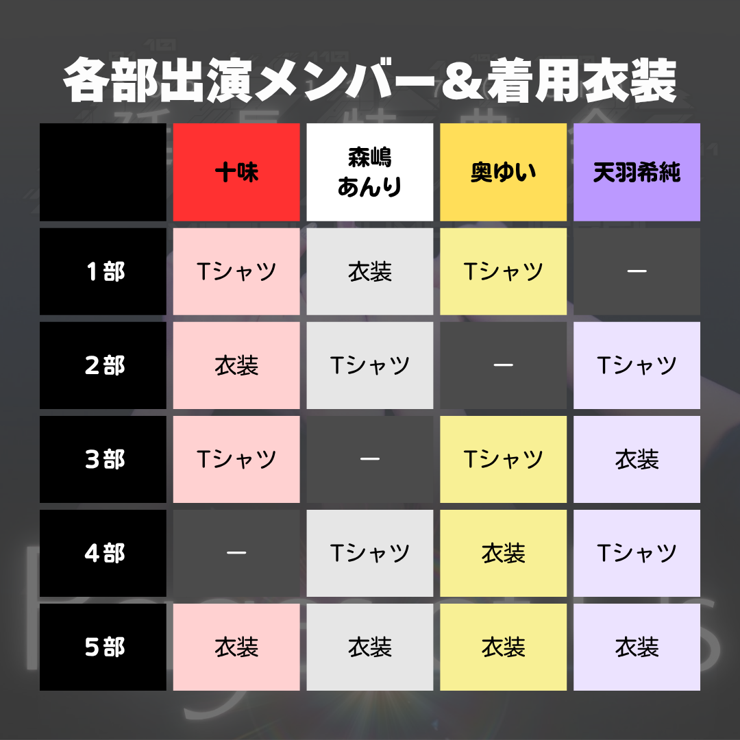 *各部出演メンバー&着用衣装一覧