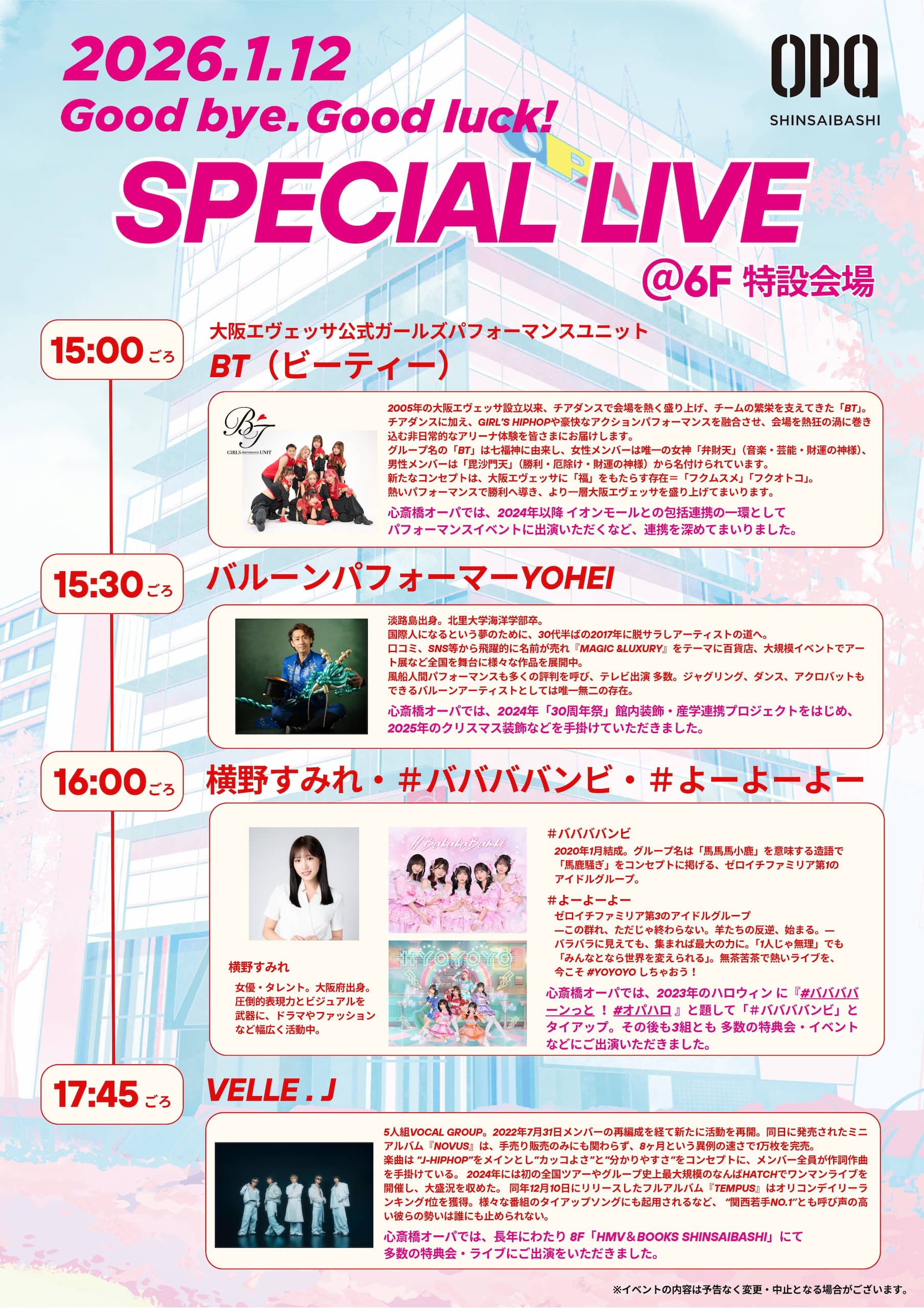 【大阪】Good bye, Good luck! SPECIAL LIVE @心斎橋オーパ